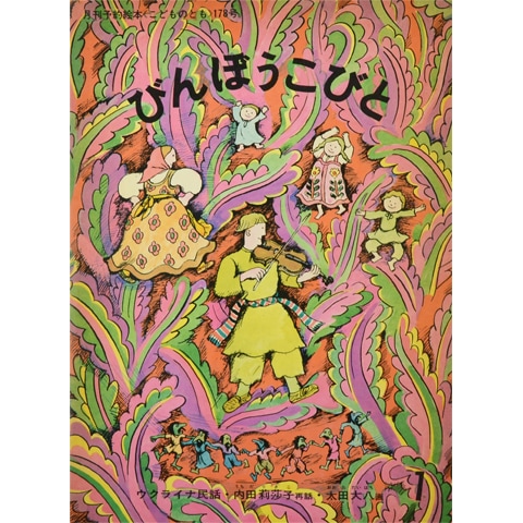 ウクライナ民話を内田莉莎子が翻案したおはなしです。働いても働いても貧乏な農夫。ある日、家に住む「びんぼうこびと」を見つけた彼は早速…。日本の貧乏神に相当する不思議な精霊によって運気を変えられてしまう人間たちの素朴な物語。太田大八による挿し絵がカラフルでどこか民族調でとても素晴らしい。ウクライナ地方の雰囲気をかもし出した魅力ある一冊です。 経年並のくたびれや若干のイタミはありますが、読む分には問題なく雑誌絵本古書として標準的な状態です。
