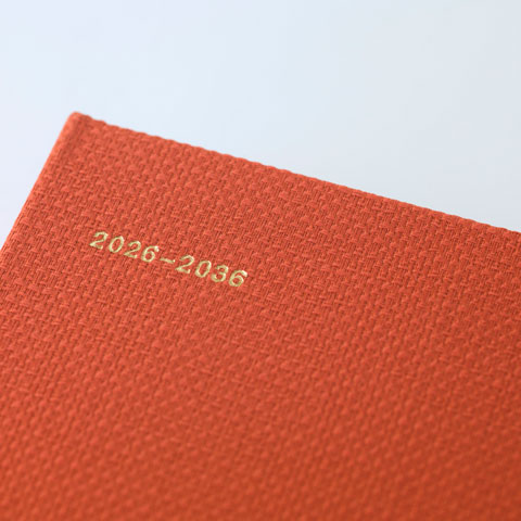 見開きの左ページには1日のメモ欄が10年分並び、2年目以降に書き込む際に昨年までの同じ日を振りかえる楽しみがあり、同じ罫線が引かれた右ページはメモの続きはもちろん、別の用途にもお使いいただけます。日記や備忘録など忘れたくない日々のできごとを書き重ねるうちに、年を経るごとの変化や成長、記憶の定着を自然と楽しむことができる仕様。未来の自分や家族への手紙としても活用できるかもしれません。巻末には記念日をメモできる年間リストページも。創業101年の老舗製本所「松岳社」による丈夫な糸かがり綴じ製本、10年という年月を伴走するに相応しいクロス装と表紙の箔押しも美しい。大切な人への贈りものにもおすすめです。