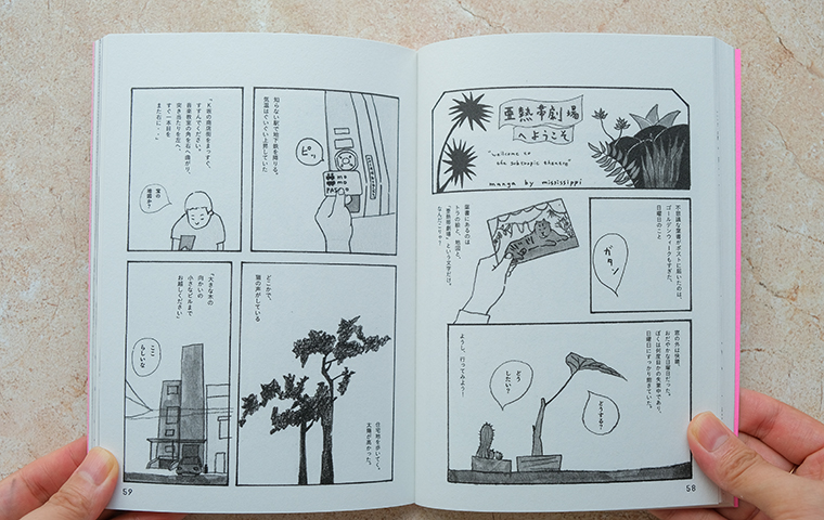 本書は京都を拠点に活動するコミック作家/イラストレーターであるMISSISSIPPIさんの短編漫画作品集。一足先にアメリカのGlacier Bay Booksでリリースされたものの日本語版です。映画を下敷きにしたものや、地元の風景から想像を膨らませたものなど、ちょっと不思議でロマンチックな漫画作品が8編が収録されています。