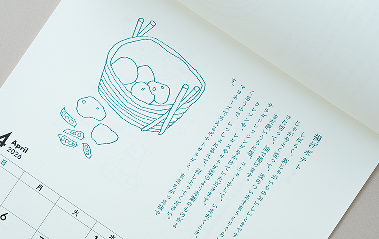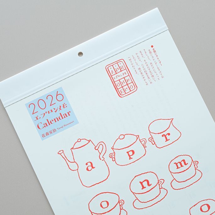 『暮しの手帖』で、1954年から続く連載『エプロンメモ』から、暮らしのアイデアを掲載した小型の「花森安治 エプロンメモカレンダー」です。季節に合わせた暮らしの知恵や、旬のおいしいもののお話が月替わりで楽しめます。簡単でおいしいレシピなど、「ちょっと真似してみようかしら」と思えるエプロンメモ。古き良き日本の食卓の面影も感じられます。シンプルなデザインで日付が分かりやすく、予定も書き込めます。バラエティにとんだ花森さんのカット画と合わせて、おたのしみください。「花森安治 表紙画カレンダー」と合わせてお使いいただくのもおすすめです。
