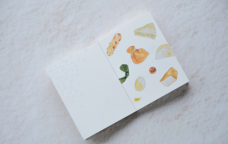 日傘・雨傘を生地から制作し、一本ずつ手作りで仕上げるイイダ傘店より、登場したメモ帖。こちらはなんと、2021年から2025年につくられたカレンダーの全絵柄合計60種をプリントした、まるで小さな画集のような贅沢なメモ帖です。一枚ずつスケッチがプリントされて裏側は無地になっています。一枚ずつ切り離せるのでメモとして使うのはもちろん、小さな絵としてすきなところに飾っても。イイダ傘店主宰の飯田純久さんが素朴なタッチで描く季節のスケッチを、堪能できる一冊です。