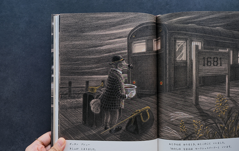「わたしの なまえは モーリシャスドードーと いいます。/どうか おげんきで」駅には「1681」と書かれています。その後も汽車が停車するたびに、動物たちは降りて行ってしまうのでした……。