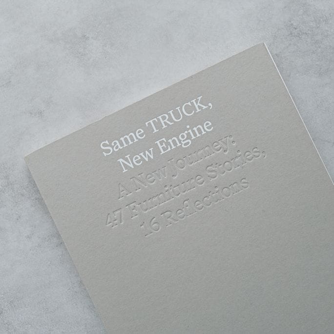 「1997年にTRUCKを始めてから28年。思いつくままに作りたい家具を作ってきた。ここ数年思うこと、それは初期の頃のようにすっきりと飾り気のない家具を作りたい。STRIPPED DOWN, SIMPLE, CLEAN, PURE」