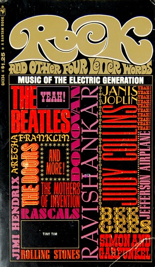 マクルーハンの『メディアはマッサージである』の柳の下の土壌的に制作されたと思われる、ロックミュージックにまつわる写真とテキストのコラージュによってできあがった、1960年代末アメリカの空気をたっぷり吸い込んだ奇書。ビートルズからジミ・ヘンドリックスにラヴィ・シャンカールまで、当時のスターたちの威光をミキサーにかけ、ヒップな味付けを加えた、といった感じのペーパーバック。60年代フリークのみならず、デザイン本好きも要チェック。カバーに経年による傷み、背表紙に小さな皺、中面には特に目立ったダメージなく良い状態。