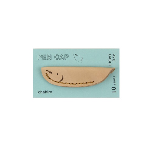 本革を用いた小物を中心に「長く使えるモノ、愛着が湧いて大事に使いたくなるモノ、生活の一部となるモノ」を心掛けて、デザインからひとつひとつ手縫いで制作されているchahiroさんの岐阜県の名菓「鮎菓子」をモチーフにした、シリーズ第1作目「鮎菓子ペンキャップ」です。小さいながらも表情や尻尾までリアルに作られています。牛ヌメ革を使用し、本物そっくりな質感も魅力的。使い込んで経年変化(エイジング)する革の表情をたのしみながらご愛用ください。長良川を泳いでいるかのような水色のパッケージです。