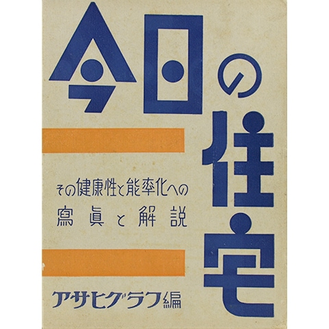 昭和10年にアサヒグラフの連載記事をまとめて発行された本。四百点を超える写真と建築家の解説により、昭和初期の住宅の細部までがよくわかる興味深い一冊です。タイトルの文字にも見られる独特のレタリングが随所に散りばめられており昭和の初めの香りたっぷり。外函に経年の痛みがありますが、読む分には問題のない古書として良好な状態です。