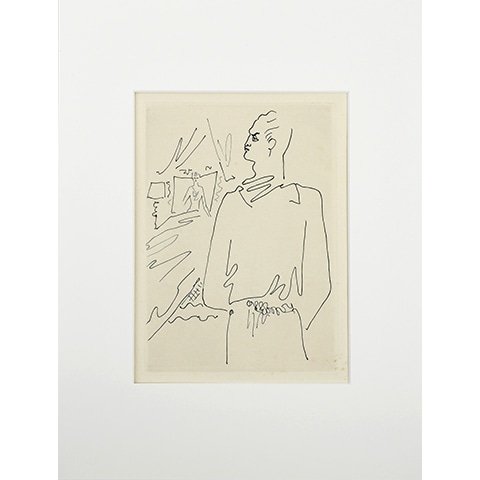 フランスの詩人、ジャン・コクトーのオリジナル銅版画が入荷いたしました。 こちらは1953年にフランスで発行された夭折の作家、ラディゲ「ドルジュル伯の舞踏会」限定220部の特装本より、ジャン・コクトーが挿絵を施した銅版画部分を分けたもの。意思の赴くまま、芸術活動に身を投じてきたコクトーの、流れるような優美な筆致による作品世界をお楽しみいただけます。※マット付き