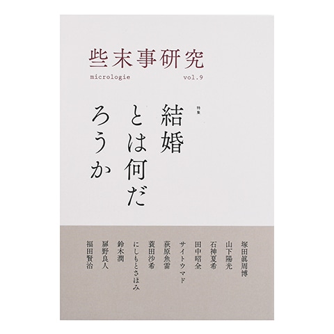 生活の営みの中で、本来はよき形として、暮らしのひとつの形式として、その多くは健康的に機能していた「結婚」というものについて、生活様式が多様になった現在、今一度で考え改めてみようという、それぞれ自身の立場や環境を踏まえながら、エッセイや対話など同じテーマで集まり想像力を補いあうような特集。人と人との有り様について親しみを込めた些末時研究1冊です。