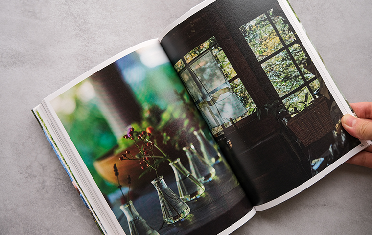 テーブルに広がるのは、色とりどりの豊かな季節の情景。"香りの薄衣"、"森の小道のジュレ"、"麗しき花のマーチ"、"太陽の光降るアイスティー"、"満月のプリン"、"銀色三日月ワイン"、"つややかなバラのムース"、"楽園のメレンゲ"…。季節の恵みにかぐわしいハーブを合わせ、草花あふれる景色がまるで目に浮かぶような美しい名のつけられたレシピが並びます。