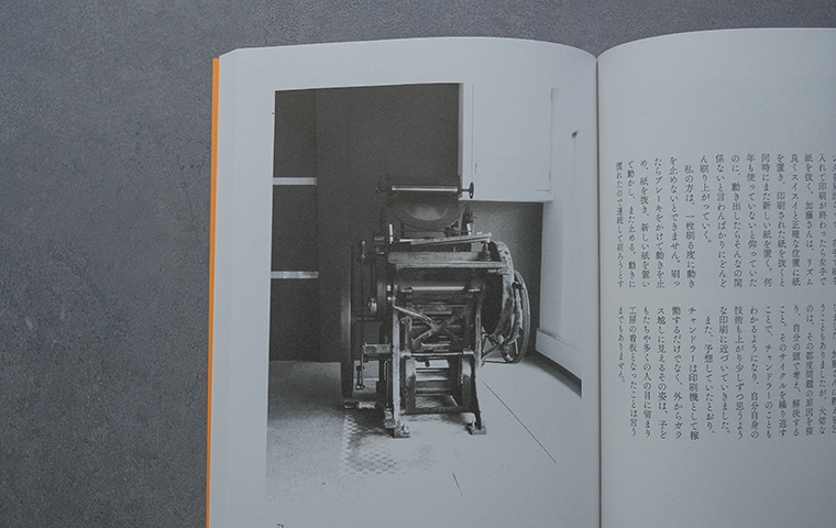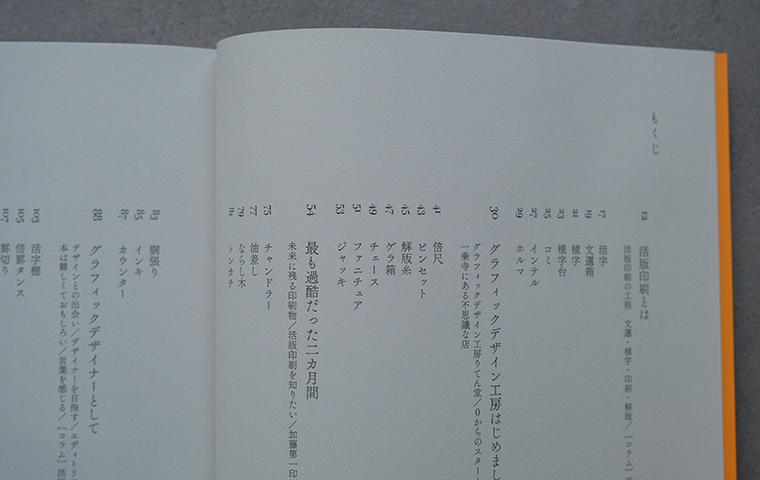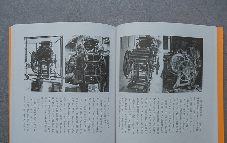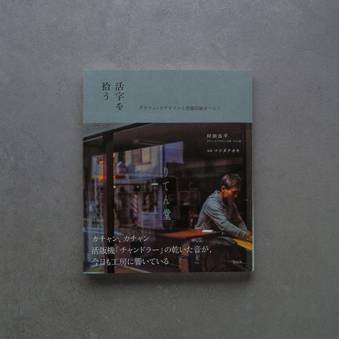 我々と同じ一乗寺の町にある一軒の活版印刷所。本書では、この「りてん堂」村田良平さんの活版への想いと実際的な技術、そして工房のこれまでの歩みがゆったりとえがかれています。「植字」や「文選箱」など活版印刷にまつわる道具や用語がひとつひとつ丁寧に紹介される項と、本好きのグラフィックデザイナーだった村田さんがどうして活版印刷の道に進んだかの項がタペストリーのように交互に綴られる構成からは、文字や紙、書物や文学、そしてグラフィックデザインへの愛と敬意が静かに感じられます。活版印刷の仕組みをじっくりと教えてくれると共に、ひとつの場としての小さな印刷工房の魅力も伝わる本書。同時に、人と人のつながりや道具との出会い、それらの持つ縁とタイミングの不思議さ、そんな物語としての面白さも備わっています。やわらかな語り口に添えられるマツダナオキさんの穏やかな写真も実に美しく、魅力的な一冊です。