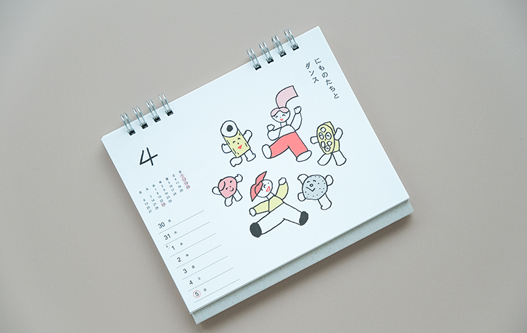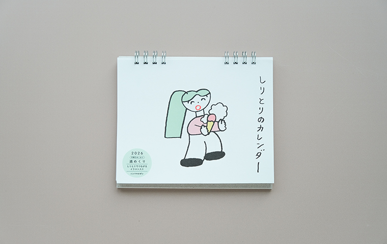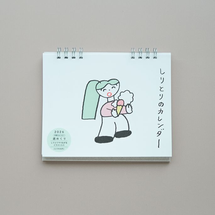 なんともいえないイラストやモチーフで、書籍や広告、グッズなど幅広く活躍中のイラストレーター、ニシワキタダシさんの週めくりでたのしむ、絵でつなぐ「しりとり」のカレンダーです。1年間53週分、すべて描き下ろしのイラスト入り。月曜日はじまりの卓上週めくりタイプで、毎週1点ずつニシワキさんのイラストとユーモアがたのしめます。「あ」から始まり、最後は「ん」で終わるところも、しりとりならでは。