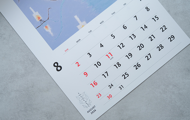 仕様:2026年1月から2026年12月まで / 13枚綴り(表紙を含む)
