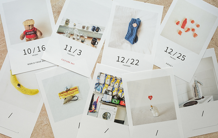 合計20枚のカレンダーの写真は、大段さんの撮り下ろしと、過去に仕事やプライベートで海外を旅した時の写真だそう。ライフワークとして撮り溜められているという「ただ、そこにあるもの」たち。何気ない日常の中でふと気持ちに残った瞬間。特別な日を指折り数えて過ごす時間の中でも、ちいさなしあわせを積み重ねていけるような愛らしく素敵なシーンが収められています。