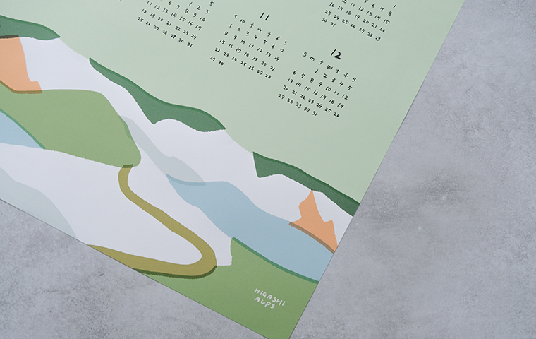 イラストレーター・落合恵さんが全てのイラストを手掛ける雑貨と出版の個人レーベル「HIGASHI ALPS」。書籍『山へいくつもりじゃなかった』の出版を機に、「山小屋の売店」をコンセプトにしたどこか懐かしい雰囲気のものづくりをされています。大判サイズに淡い色彩の雄大な連峰が描かれたカレンダーで、清々しい一年を。(岡本)