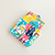 きれいなブルーの傘が目を引く、カラフルな色合いが楽しい模様「雨やどり」。裏地はぱっと明るいイエロー。