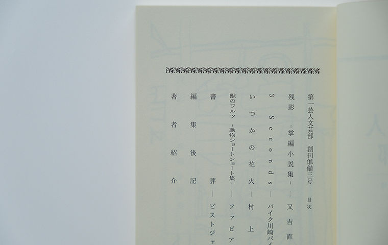 それぞれの語法を武器にし、掌編小説集、ショートショート、書評など、日々お笑いの世界を築く芸人ならではの表現が詰まった文芸誌であり、創刊準備号と題した三号目。此度も個性的な原稿詰まった1冊です。※「第」の正式な表記は旧字体となります。(原口)