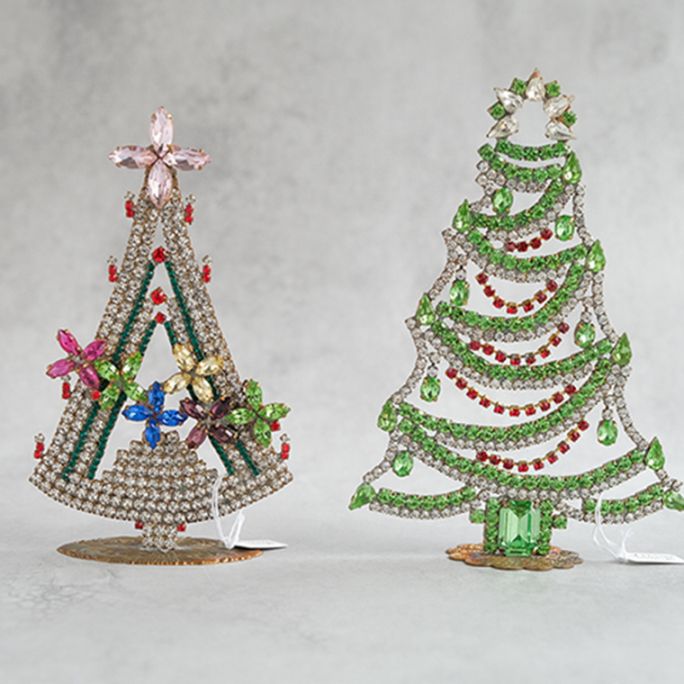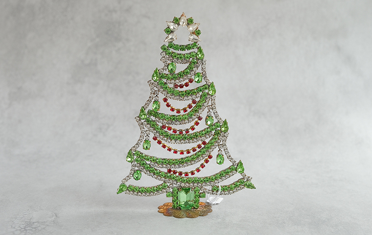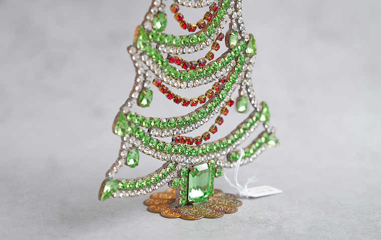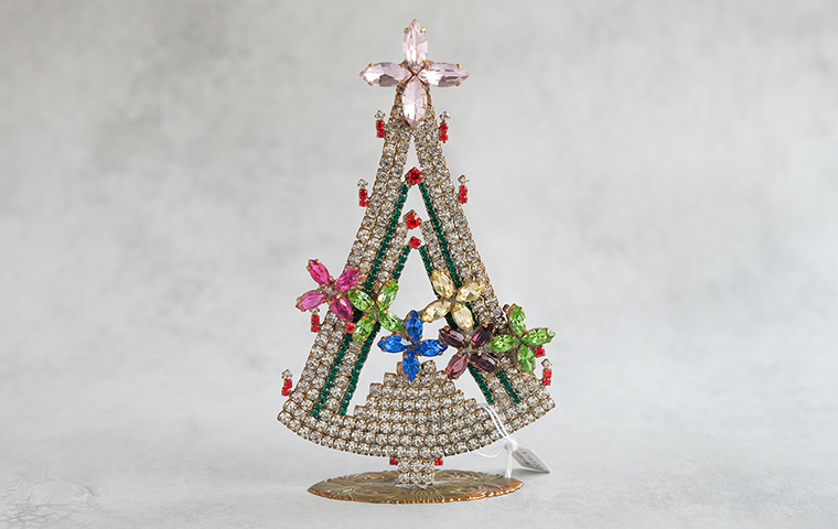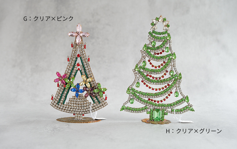 光を受けてゆらゆらと瞬くラインストーンのクリスマスツリー。ボヘミアンガラスの国、チェコのガラス工房で、ひとつひとつ手作業で作られています。いろいろなガラスの粒の組み合わせは、どれも個性的で華やか。棚の上やコーナーにそっと置いて、静かであたたかな時間をお楽しみください。プレゼントにもおすすめです。