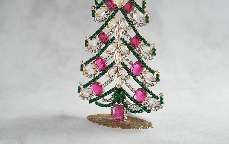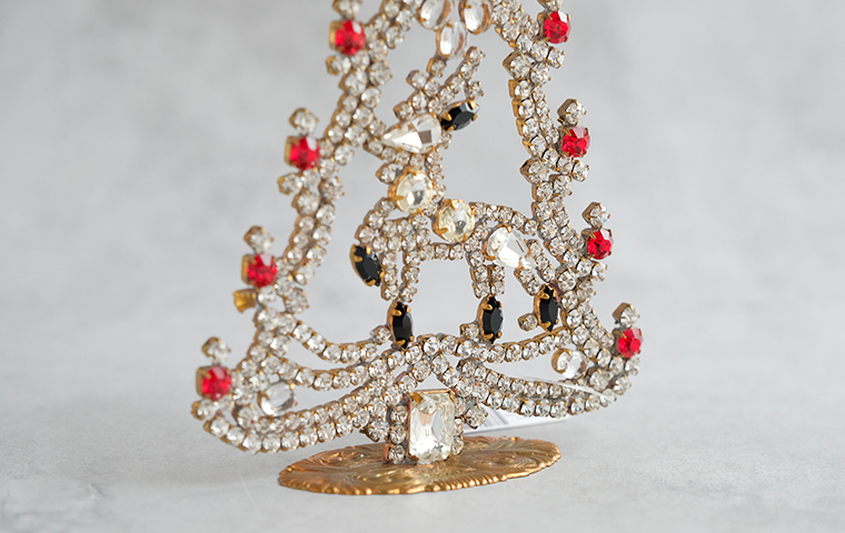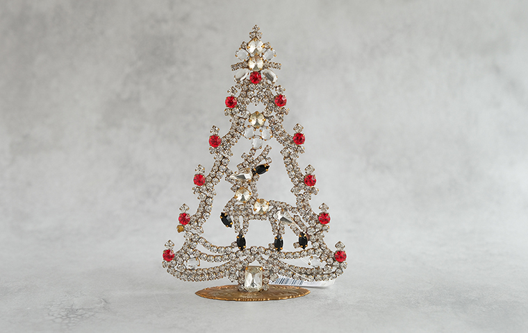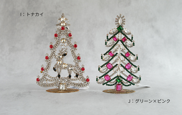 光を受けてゆらゆらと瞬くラインストーンのクリスマスツリー。ボヘミアンガラスの国、チェコのガラス工房で、ひとつひとつ手作業で作られています。いろいろなガラスの粒の組み合わせは、どれも個性的で華やか。棚の上やコーナーにそっと置いて、静かであたたかな時間をお楽しみください。プレゼントにもおすすめです。