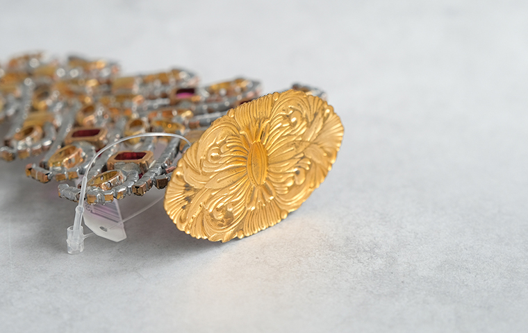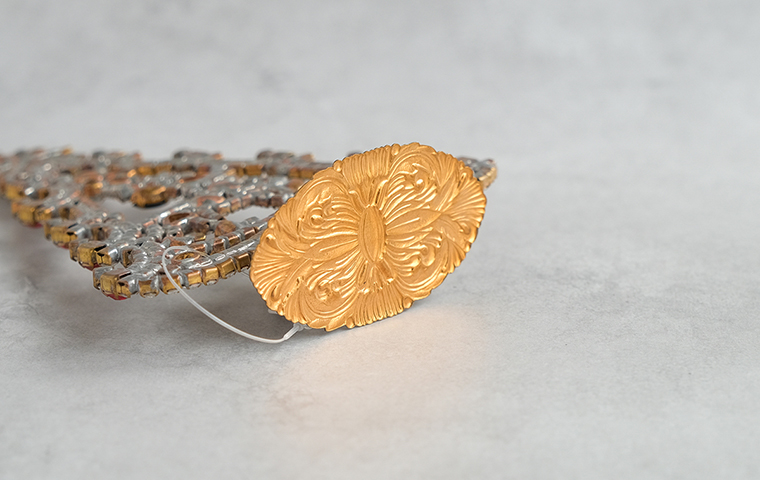 ラインストーンツリーは、ガラスパーツと真鍮(鉛フリー)を半田ごてで溶接してラインのように繋ぎ、足元に立たせる為の土台を付けて作られています。ツリーという形状から足元が歪んだり、斜めの状態で重みがかかると、変形したり折れたりしやくすなります。丁寧にお取り扱いくださいますようお願いします。