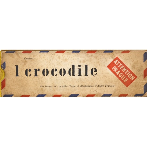 サヴィニャックと並ぶフランスの偉大なるイラストレーター、アンドレ・フランソワがテキスト、イラストをトータルに手がけた貴重な1冊。横長の封筒を模したスリップケースを取り出すと、表紙から裏表紙にわたるながーい鰐の姿。日本では『わにのなみだ』というタイトルで刊行されたこともある名作の、名門デルピール出版より刊行されたオリジナル版です。カバーに全体に黒ずみ、シミ、破れ、本体に汚れあり。裏表紙見返しに"MANABE HIROSHI"の蔵書シール。おそらく真鍋博の蔵書だったものと思われます。