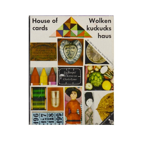 1952年にイームズ夫妻によってデザインされたハウス オブ カード。ピクチャーデッキと呼ばれる54枚のカードは、全てイームズ自身のコレクションの写真が用いられています。カードには切り込みが入っており、他のカードを差し込み組み立てることによって、積み木のように組み立てることができます。自由に形をつくる玩具として以外に、裁縫道具や果物、色えんぴつなど暮らしを彩るかけらを写した、カードの1枚1枚をお楽しみください。西ドイツ・ラベンスバーガー社製のユーズド品ですが、目立った汚れはありません。